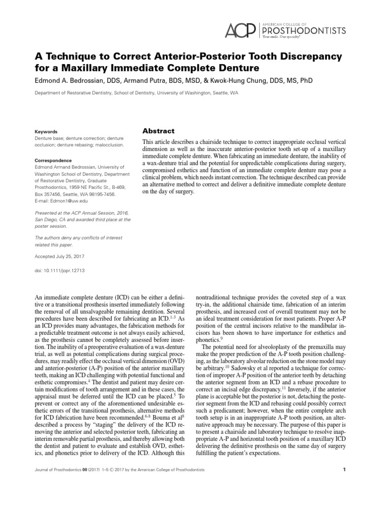 - A Technique To Correct Anterior Posterior Tooth Discrepancy For A Maxillary Immediate Complete Denture Dentures Prosthodontics , The American Dental Association Explains On Their Website Dds (Doctor Of Dental Surgery) And Dmd.
