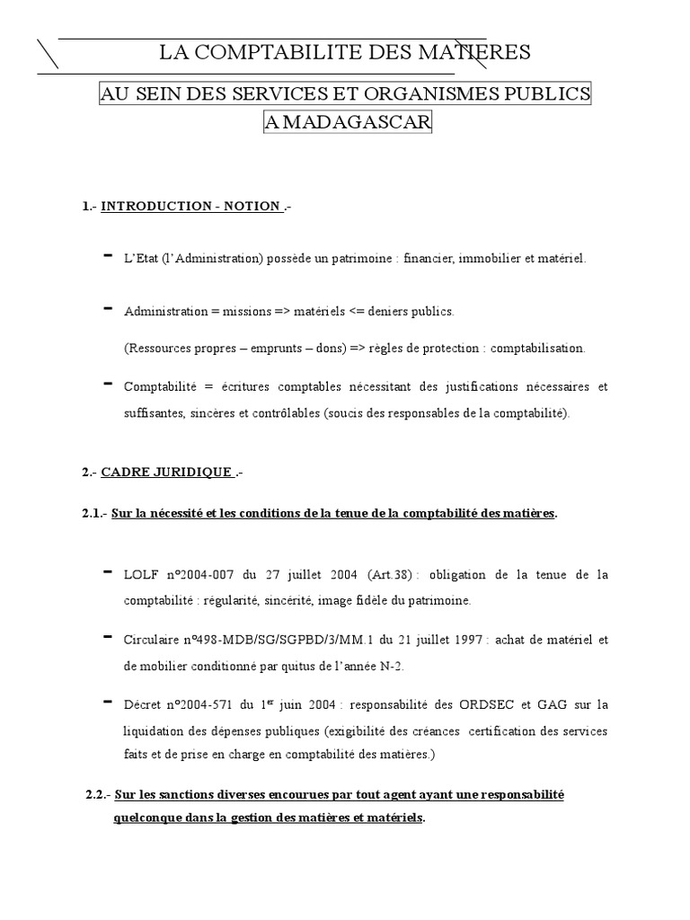 - La Comptabilite Des Matieres Rtf Comptabilite Budget , Les Deniers Publics, Les Fonds Appartenant À L'état, À Une Ville.